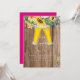 Sunflowers, boots, lights engagement party invitation. Beer. Gold text. Invitation. Wood.