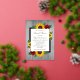 Design features elegant sunflowers, roses, and wildflowers with a golden yellow, red and white fall colour palette. Design also features a real foil frame against a rustic grey barn wood background