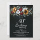 Sunflower Rose Floral Black 40th Birthday Party Invitation