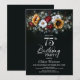 Sunflower Rose Floral Black 75th Birthday Party Invitation