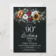 Sunflower Rose Floral Black 90th Birthday Party Invitation