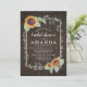Sunflower Rustic Bridal Shower Invitations - features a rustic country barn wood background with watercolor sunflowers and other floral elements over a watercolor frame. See the full matching collection on this page to complete your event needs.