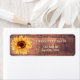 Rustic brown wood as background. Decorated with a sunflower head. Personalise and add your name and address. White letters.