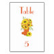 Table cards with a rustic charm, this design features a white background with a lovely sunflower illustration inside of a orange and white polka dot rain boot. The text is in lovely orange font. Personalise yours today!