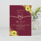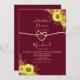 Vintage elegant rustic burgundy wedding invitation with trendy calligraphy script, faux gold foil rope heart and beautiful sunflowers. The best choice for chic fall weddings.