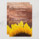 Yellow Sunflower Rustic Wedding Invitation with a bold photo of a sunflower on a brown barn board wood panel printed photo effect background. A beautiful choice for wedding invitations if you are having a country wedding, country barn theme wedding or a fall wedding or autumn wedding. Fully customisable including your choice of more rustic vintage fonts using the "customise it" edit menu. Add your personal information and choose your colour scheme, including many wonderful paper choices. Need help with customising your wedding packet? Please contact luxuryweddinginvitations@gmail.com