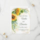 Rustic save the date wedding card featuring bright sunflowers and eucalyptus greenery. This botanical wedding design is perfect for fall, country, or outdoor weddings. This design adds warmth and joy while keeping a natural rustic style.