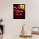 Welcome to a fall celebration with our elegant, boho-inspired wedding poster. Set against rustic barn wood and adorned with vibrant sunflowers, chic gold botanical lace, and string lights, this modern design features trendy calligraphy script. Perfect for adding a touch of charm and warmth to your autumn wedding.
