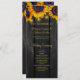 Elegant rustic sunflower wood wedding ceremony program template featuring beautiful bright yellow orange sunflowers bouquets and strings of twinkle lights on a country style dark brown wooden background. +++++++++++ + Personalise it with your your details on both sides.+++++++++++ Suitable for rustic country vintage traditional chic summer garden or autumn fall outdoor backyard weddings. Digital download available.