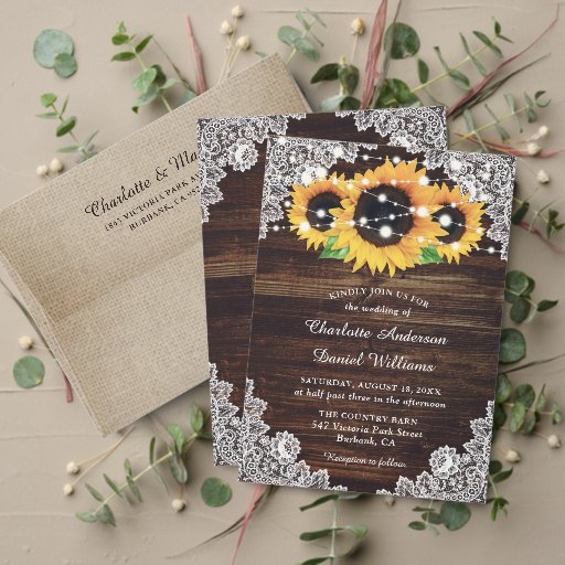 Sunflower Rustic Wood Lights Wedding Photo Save The Date