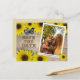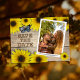 Adorable, rustic, sunflower design with blue butterfly on wood. Photo template on front and text templates on back for the details.