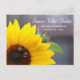 This design features a photo of a sunflower with a couple bees. Personalise this postcard with information of your wedding. This postcard works well for sunflower theme, summer or fall / autumn weddings.