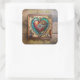 Sunflower Stained Glass Heart Steampunk Series Square Sticker