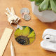 A beautiful mosaic sunflower adds a bit of sunshine to this keychain. Special effects were used on a sunflower photo to create a tiled or stained glass pattern over this large flower. The bright yellow flower petals are complemented by the dark brown flower centre and the dark green leaves.