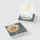 The coasters are gorgeous, a quality feel and heavy weight. They look like a precious archeological find. A rustic stone juxtaposed with a modern floral black and white print. I like the way the print goes slightly imperfect on the cut stone edges giving them a kind-of natural beauty.
