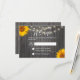 Sunflower & String Lights Barn Wood Wedding RSVP Announcement.