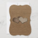 Rustic country sunflower wedding invitation featuring sunflowers and string lights on a burlap and lace background. Two burlap hearts at the back.
