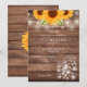 Pretty sunflowers, string lights and mason jars decorate your special wedding celebration details set in elegant gold typography on a rustic wood background. The reverse features your monogram initials set within a matching sunflower. Designed by Thisisnotme©
