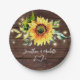 Sunflower String Lights Rustic Dark Wood Wedding Paper Plate
