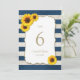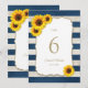 Sunflower Stripes Navy Blue Wedding Table Numbers