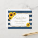 Sunflower Stripes Save the Date, Navy Blue Wedding Announcement Postcard
