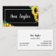 Classy Business Card with a Black Background and Sunflower Corners perfect for makeup artists, florists, photographers, graphic designers, fashion designers and boutiques