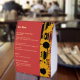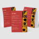 A tent card bar menu that brings the collection's design language to the bar — warm gold typography on a rich scarlet background, the collection's signature sunflower silhouettes running the full height of the right panel. Structured sections for signature cocktails and mocktail, beers, wine and bubbles, fully editable to reflect your actual bar selection. A cohesive addition to your reception décor that ties the bar setup to the rest of your stationery suite.