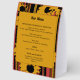 A tent card bar menu that brings the collection's design language to the bar — the collection's signature sunflower silhouettes and striped patterns framing a clearly organized drinks list. Structured sections for signature cocktails and mocktail, beers, wine and bubbles, fully editable to reflect your actual bar selection. A cohesive addition to your reception décor that ties the bar setup to the rest of your stationery suite.
