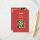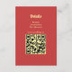 A sleek scarlet details card in warm gold typography — your names on the front, everything your guests need on the back. Reception details, accommodation, and additional information presented cleanly alongside your wedding website URL and QR code, directing guests straight to the full details at a glance.