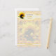 Bright yellow sunflower against an orange background pattern of sunflowers. Customisable stationery with area at top for name and contact info and at bottom for website address -- or choose your own text to enter.