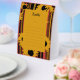 Complete your table settings with these bold modern sunset coral and gold sunflower table number tent cards. The striking design features artistic sunflower silhouettes with integrated coral accents and luxe striped patterns, creating elegant table markers that help guests find their seats in style. A blank space is provided for table numbers and guest list on the front, while the back displays your couple names and wedding date.