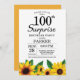 Sunflower Surprise 100th Birthday Invitation. Floral Flowers and White Background. Country Vintage Retro. Women Birthday. 12th 13th 15th 16th 18th 20th 21st 30th 40th 50th 60th 70th 80th 90th 100th, any ages. Printable Digital. For further customisation, please click the "Customise it" button and use our design tool to modify this template.