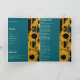 Sunflower Teal Blue Gold Modern Folded Wedding Program