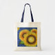 This tasteful tote bag has a bright sunflower design. The design is from an original painting.
