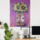 Watercolor and acryl painting, representing a vintage painted vase full of fresh sunflowers.