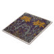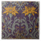 Two square tiles featuring embossed floral designs on a dark purple background. Each tile showcases a large, stylised sunflower with numerous petals and a detailed centre, resembling a sunflower. The flowers are positioned at the top of each tile, with silver-grey stems and foliage extending downwards.