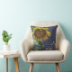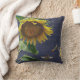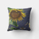 Sunflower w Bees Floral Script Rustic Navy Wood Cushion