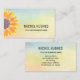 This floral business card is decorated with a yellow watercolor sunflower on a colourful background.