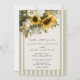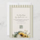 This sunflower wedding invitation set captures the essence of a romantic countryside celebration with a refined, modern touch. Designed with warm golden sunflowers, soft ivory blooms, and lush greenery, this floral wedding invitation brings together rustic charm and timeless elegance, making it perfect for barn weddings, garden ceremonies, and outdoor summer or fall weddings. The neutral cream background paired with subtle sage green striped borders creates a sophisticated, editorial-style layout that feels both fresh and classic. This wedding invitation suite also includes a modern QR code RSVP on the back, allowing guests to respond quickly and conveniently through a digital link. The seamless blend of traditional printed invitation and tech-forward RSVP option makes this design both stylish and practical for today’s couples. Perfect for country weddings, vineyard weddings, garden parties, or elegant outdoor events, this sunflower wedding invitation offers a beautiful way to set the tone for your special day while embracing both classic design and contemporary functionality.