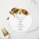 Celebrate your sunflower wedding with these elegant dinner menu cards, featuring a beautiful watercolor sunflower wedding menu design in warm golden yellow and rich brown tones. These golden yellow rustic menu cards showcase a delicate sunflower border on the front, with additional floral details on the back for a cohesive, artful presentation. Perfect as sunflower dinner menus for your reception, this design complements garden theme wedding stationery and customisable boho wedding menus alike. Easily personalise your diy personalised menu cards using the template fields to match your menu and event details. Discover more zazzle custom wedding menus and coordinating designs at www.zazzle.com/dotellabelle