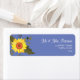 Trendy, elegant, botanical, boho dusty blue return address label, with sunflower and trendy calligraphy script.