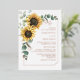 Create a modern Sunflower Floral Wedding invitation card with this cute template featuring beautiful rustic floral bouquet, geometric gold frame, with modern typography.