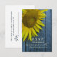 A wedding rsvp featuring a photo on front of a sunflower resting against a background of barnwood. Personalise the text on front and back.