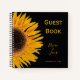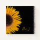 Rustic country wedding. Yellow sunflower on black background country reception spiral square keepsake guest book for bride and groom. Beautiful elegant simple flower print design. Image copyright Marg Seregelyi Photography.