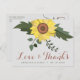 Simple, elegant greenery and sunflower wedding thank you card with modern terracotta script.