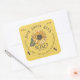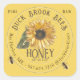 A square yellow label with vintage sunflower illustration and realistic bee. The word "Honey" is written in a decorative brown font. These 1.5”x 1.5" labels fit 8 and 12 oz. plastic bears.