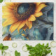 Sunflower with Butterflies with Customizable Text Tea Towel