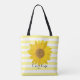 Sunflower with Custom Name Yellow Striped Tote Bag