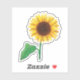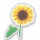 Sticker featuring an illustration of a yellow sunflower with a green leaf. Loose, hand drawn style.