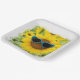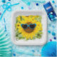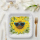 Sunflower with Sunglasses On Wood Paper Plate